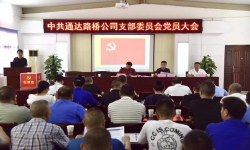 7月24日下午,中共湖北钟祥通达路桥工程有限公司支部委员会组织 召开党员大会进行换届选举,全体党员参加。特邀钟祥市公路管理局局党 委委员、副局长王坤、顾涛出席会议。 大会在庄严的国歌声中拉开帷幕。市局党委委员、...